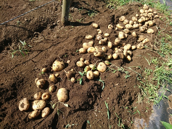 収穫時、ウズラの卵よりも小さいサイズの芋は、処分します。