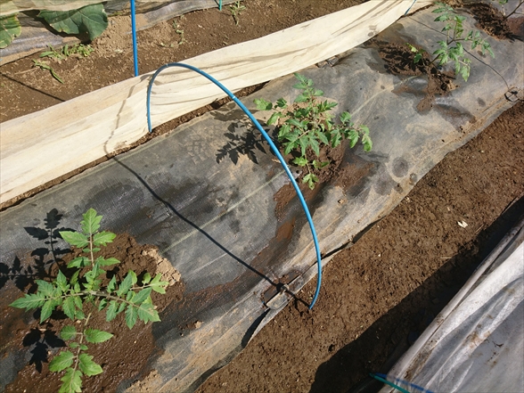 そして、不織布でトンネルして養生。1~2週間ほど畑で苗を大きくします。