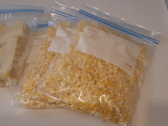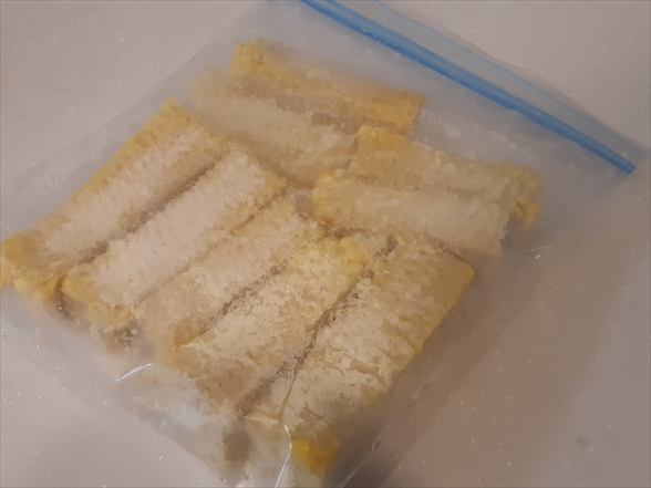 我が家では、トウモロコシご飯をよくつくるので、芯も冷凍保存します。